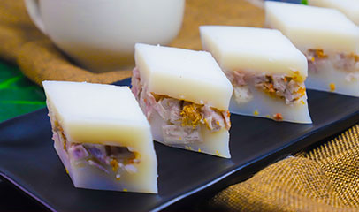 - 芝麻球、桂花糕、五香芋头糕、三丝炸春卷、农家鸡蛋挞、香滑马蹄糕等。