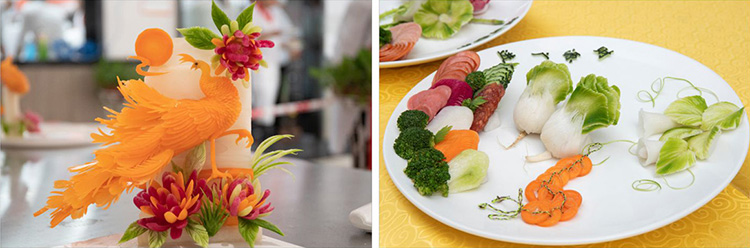 | 技能拓展 | 流行川湘粤菜:学习粤式白切鸡、鱼头豆腐汤、白灼鸭胗、虫草花蒸全鸡、菠萝咕噜肉等; 热门川湘粤菜:黑椒牛仔骨、鲍鱼扣饭、仔姜炒鸭、孔雀开屏鱼、木桶猪手等; 潮州卤水:卤水调制及市面爆款卤味制作; 食品雕刻与拼盘:海南风光、迎客松、步步高升等食品拼盘等; 阶段考核:考验学生对本阶段学习菜品的掌握程度。 |